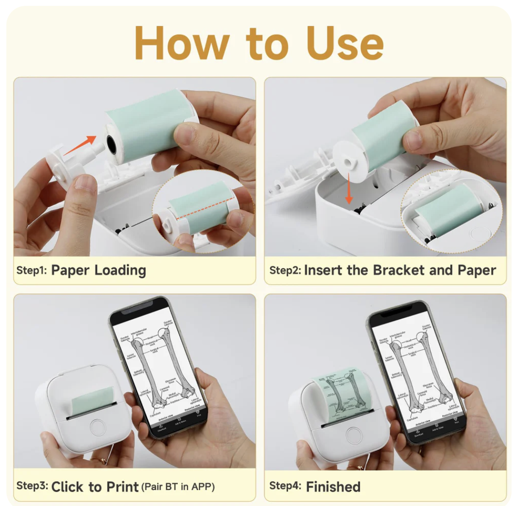Mini Impresora Print Pocket Go, Impresora rápida de pegatinas sin tinta
